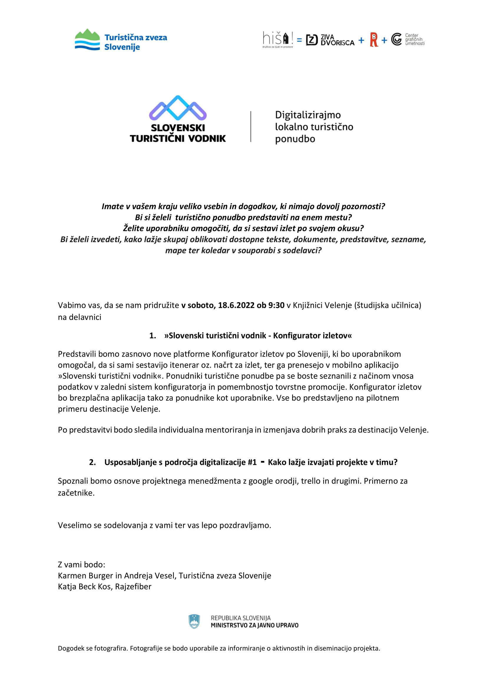 Izobraževanje - Digitaliziramo lokalno turistično ponudbo