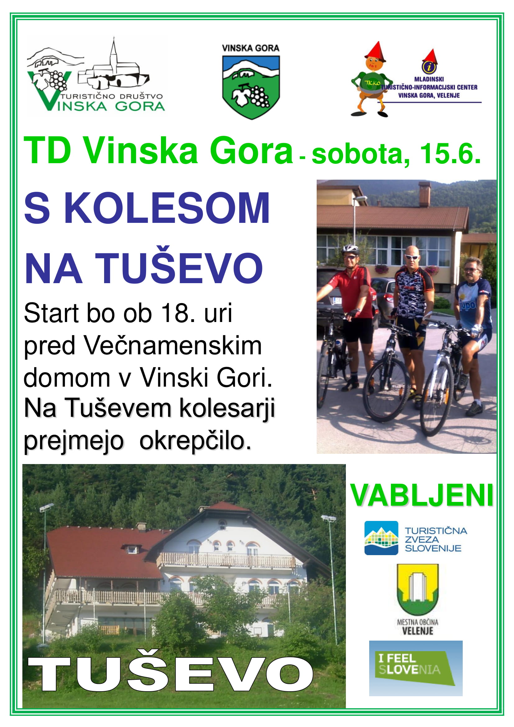 Vabljeni na kolesarski vzpon na Tuševo 0.0 Zadnja posodobitev: -/- Sorodne Novice: TUŠEVO 2020 Ana in Nada prostovoljki za leto 2019 Pohod na Tuševo 2019 Veselo v poletje 2019 TUŠEVO 2019 Hubertov dan na Lopatniku 2019 Predstavitev na Mestni tržnici 2019 Sodelovanje na Pomladi na Grilovi domačiji 2019 Čistilna akcija 2019 v Vinski Gori Občni zbor TD Vinska Gora 2019 0 Kolesarjenje
