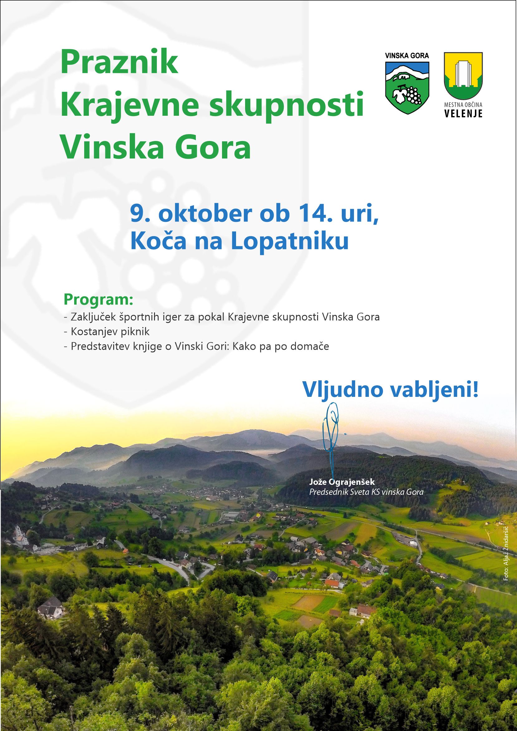 Vabljeni na Lopatnik na praznovanje KS Vinska Gora 0.0 Zadnja posodobitev: -/- Sorodne Novice: Praznik KS Vinska Gora 2023 Hubertov dan na Lopatniku 2019 Hubertov dan 2018 na Lopatniku Praznik KS Vinska Gora Kostanjev piknik na Lopatniku 2017 Kostanjev piknik na Lopatniku Sejem jesenskih dobrot in praznik KS Praznik buč HUBERTOV DAN NA LOPATNIKU 0 Praznik KS