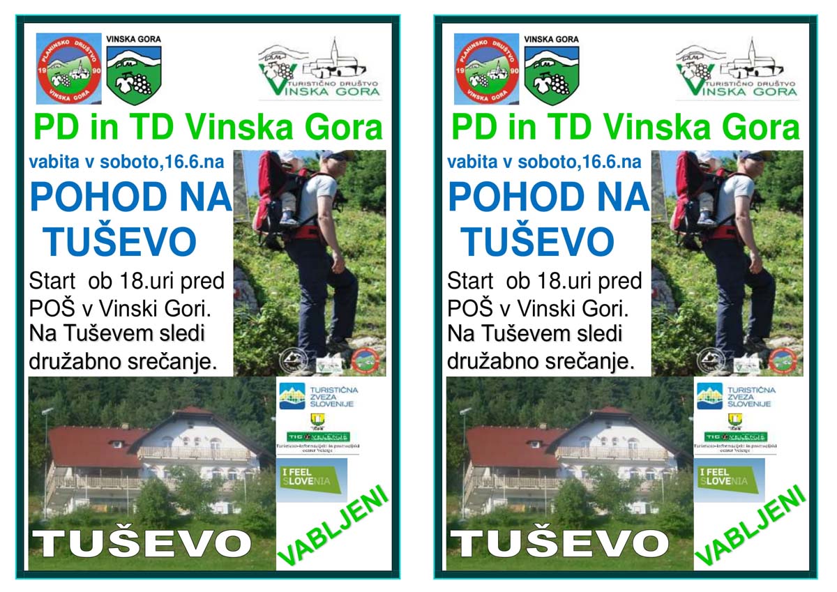 V okviru Družinskega vikenda, TD Vinska Gora vabi na Pohod na Tuševo v soboto 16.6. ob 18 uri izpred Večnamenskega doma
